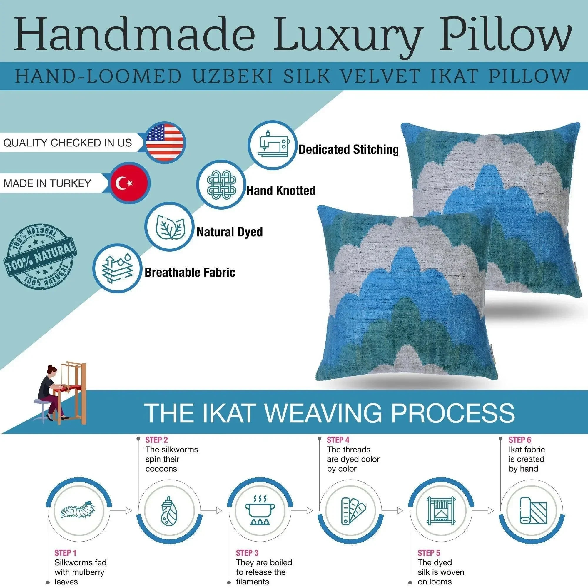 ● Handmade pillows MADE IN TURKEY: these throw pillows are handmade, made in TURKEY. A matching colored zipper closure is used which is almost invisible giving the pillow a neat and more pleasant look.